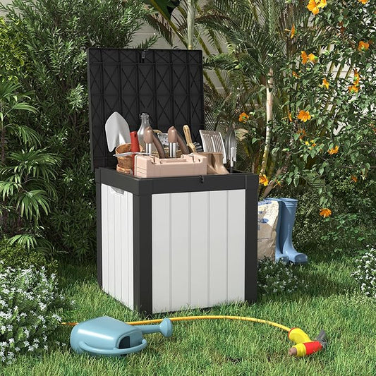40 Gallon Resin Deck Box, Lockable Patio Outdoor Storage Box for Furniture, Garden Tools and Tools Storage, Waterproof Outside Storage Boxes - Black&White