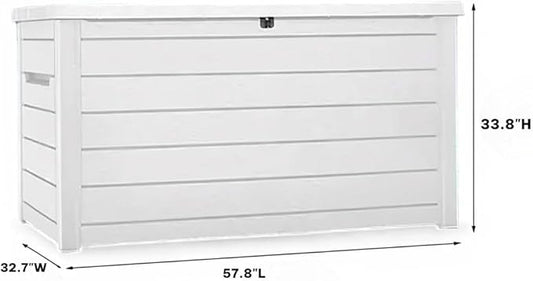 230 Gallon Deck Storage Box Outdoor Patio Container – Weather-Resistant, Lockable Outdoor Storage Solution for Patio, Garden, and Poolside (White)