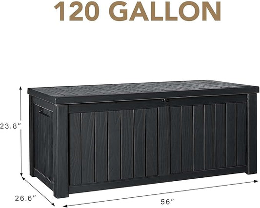 120 Gallon Outdoor Storage Deck Box Waterproof, Large Patio Storage Bin for Outside Cushions, Throw Pillows, Garden Tools, Lockable (Dark Gray Resin Lid)