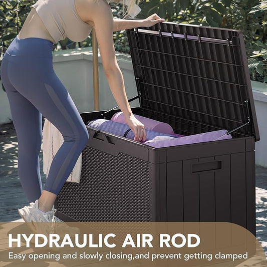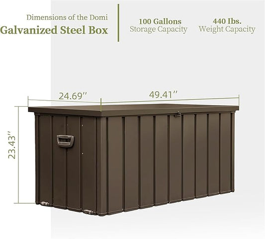 100 Gallon Outdoor Storage Deck Box Waterproof, Large Patio Storage Bin for Outside Cushions, Throw Pillows, Garden Tools, Lockable (Dark Brown)
