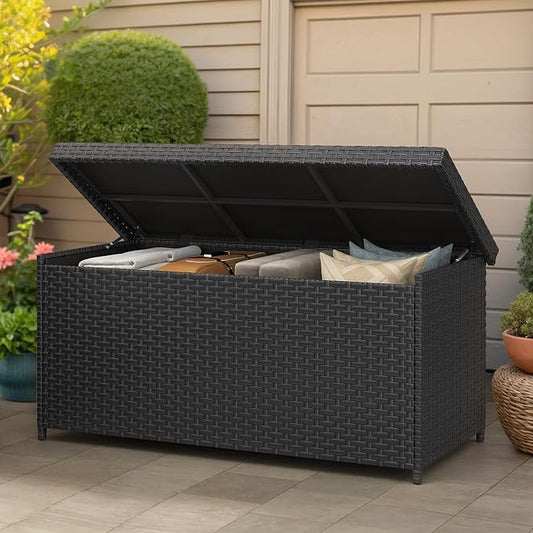 YITAHOME 260 Gallon Wicker Deck Box, XXL All-Weather Outdoor Storage Box, Extra Large Rattan Storage Bin for Patio Furniture, Outdoor Cushions, Pool Storage and Garden Tools (Black)