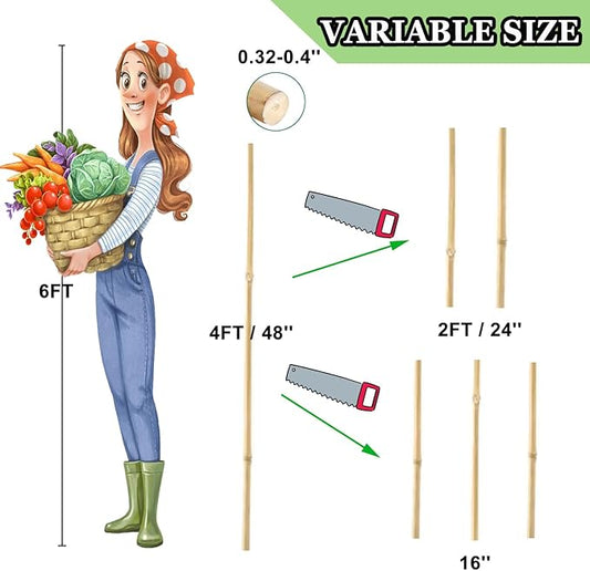 50Pcs Garden Stakes, 0.32”/16 Inch Bamboo Sticks,Natural Plant Stakes for Indoor and Outdoor Plants,Poles for Tomatoes, Beans, Potted Plants