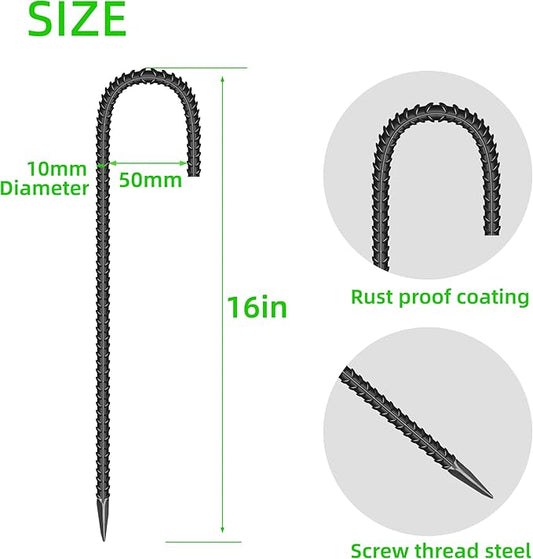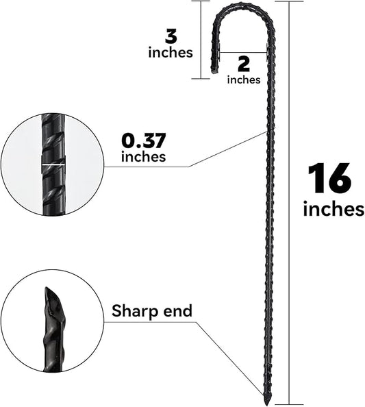 16 Inch J-Hook Rebar Stakes, HeavyDuty Anti-Rust Ground Anchors for Chainlink Fence, Garden Dog Fence, Sports nets, Camping Tent, Etc (40 Pack)