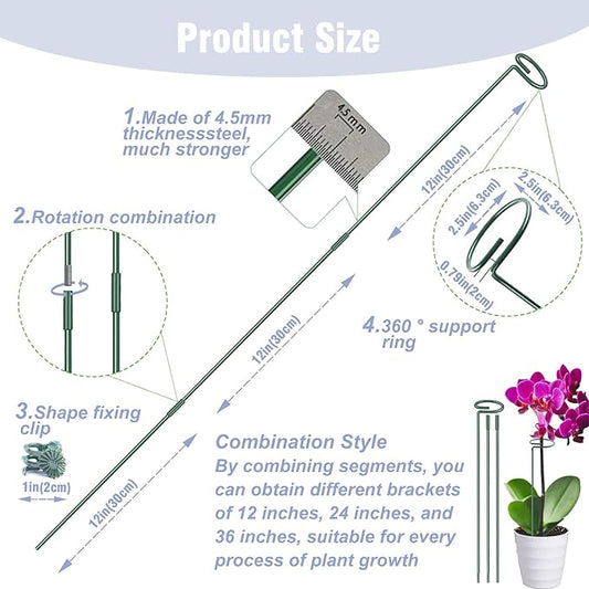 4.5mm Adjustable Length Plant Stake, Assembled (12 or 24 or 36 inch) Outdoor and Indoor Plant Support Poles for Flowers Marigolds Tomatoes Lilies Peonies Roses Daffodils Flower Clips (4 Sets, 16 Pcs)