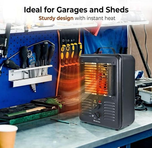 Comfort Zone Electric Portable Utility Space Heater with Adjustable Thermostat, Overheat Protection, & Tip-Over Switch, 1500W, CZ799BK