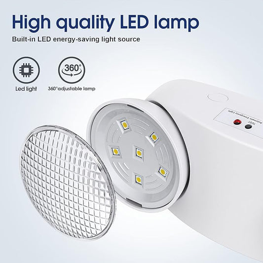 2 Pack White LED Emergency Lights with Battery Backup, Two Head Adjustable Emergency Lighting Fixtures-Fireproof Materials-Emergency Lighting Fixture/Emergency Light Home.