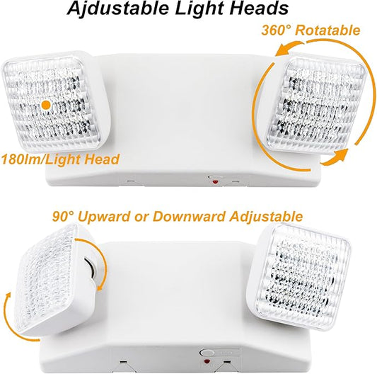 6 Packs White Emergency Exit Fixture with Battery Backup -UL s Emergency Lighting and 2 LED Heads Adjustable Light Heads for Indoor.