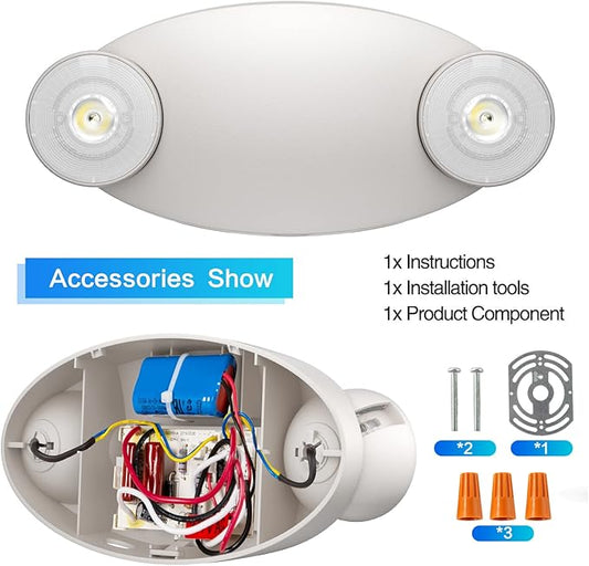 1 Pack White LED Emergency Lights with Battery Backup, Two Head Adjustable Emergency Lighting Fixtures-Fireproof Materials-Emergency Lighting Fixture/Emergency Light Home.