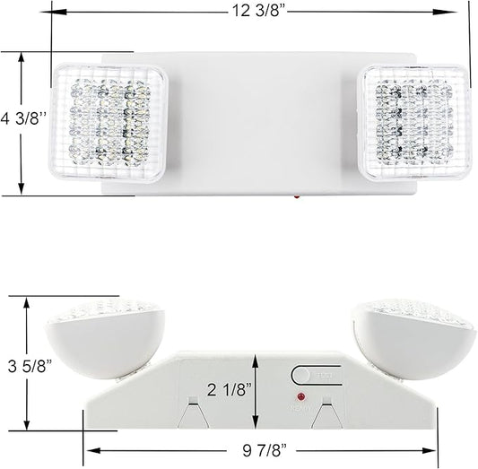 SPECTSUN 12 Pack White Emergency Lighting with 2 LED Heads White Emergency Exit Fixture and Battery Backup -UL 924 Certified and CEC Qualified Emergency Light,ABS housing,Adjustable Light Heads