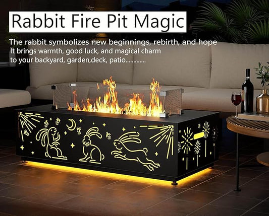 COSIEST Outdoor Propane Fire Pit Table 56" x 28" Rectangle Bronze Compact Concrete-Like Finish, CSA Certified, 50,000 BTU,Wind Guard, Tank Outside, Free Lava Rocks, Fits 20lb Tank Outside, Raincover