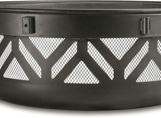 CASTLECREEK 47" Fire Pit BBQ Grill Outdoor Wood Burning Steel Log Firepit for Camping, Grilling, Smores, Yard, Cooking Outside, Barbecue, Bonfire Geometric
