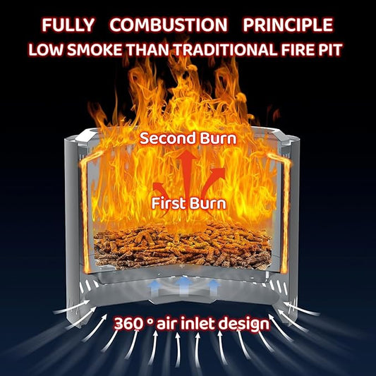 15 Stainless Steel Smokeless Fire Pit, Outdoor Smokeless Firepit, Wood Burning Fire Pits for Camping, Bonfire, Low Smoke Firepit for Outside (Oblique Hole)