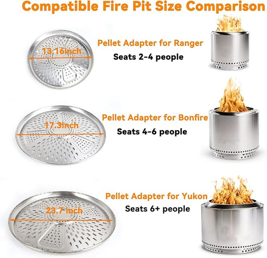 KEESHA Pellet Adapter for Solo Stove Bonfire Stainless Steel Conversion Kit for Smokeless Outdoor Fire Pit, Ideal for Burning Pellets, Diameter: 17.3 in