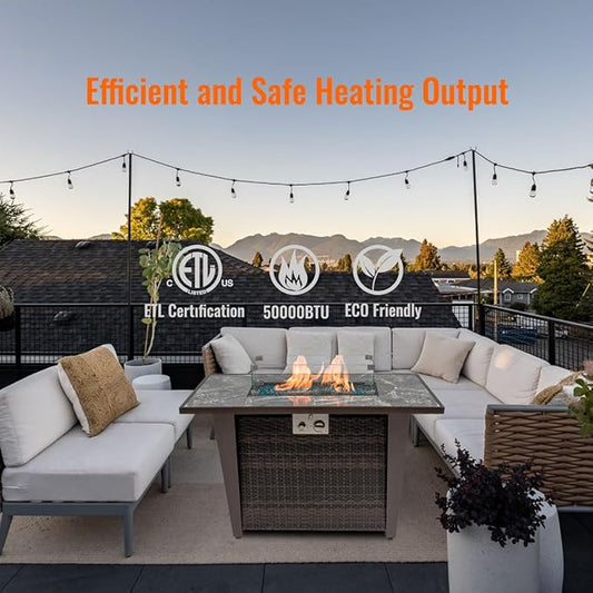 COSIEST 2-Piece Outdoor Propane Firepit Table Set w Tank Table, CSA Certified, 42 inch Dark Fire Table (50,000 BTU) w 16 inches Tank Cover Side Table 20lb for Garden,Pool,Backyard