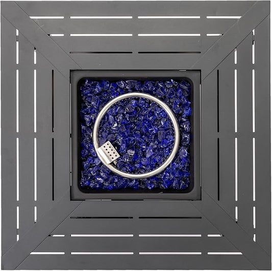 Real Flame Aegean 36”in Square Propane or Natural Gas Fire Pit Table, 50,000 BTU, Powder-Coated Steel, Push-Button Ignition, CSA Certified, Lava Rock, Storage Cover, Stainless Steel Burner with Lid