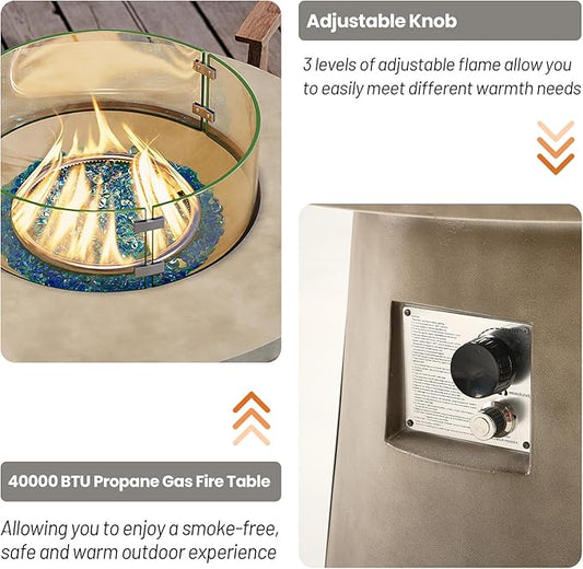 Nimes Concrete Fire Pit 40.9" x 40.9" Patio Firepit Includes Fire Glass Modern Fire Pits & Outdoor Fireplaces for Garden, Deck, Indoor & Outdoor Heating