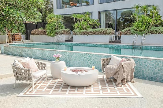 Westport Concrete Fire Pit 34" x 34" Outdoor Patio Firepit Includes Lava Rocks Modern Fire Pits & Outdoor Fireplaces for Garden, Deck, Indoor & Outdoor Heating