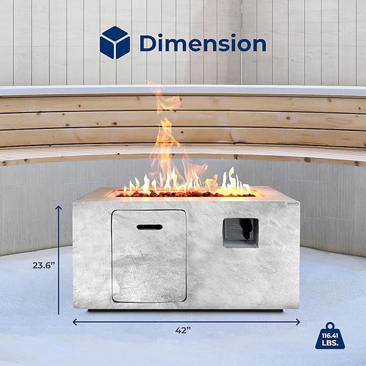 SereneLife Propane Gas Fire Pit Table 40000 BTU Square Outdoor Firepit with Protective Cover, Durable Metal Construction, and Stylish Design for Patio or Backyard