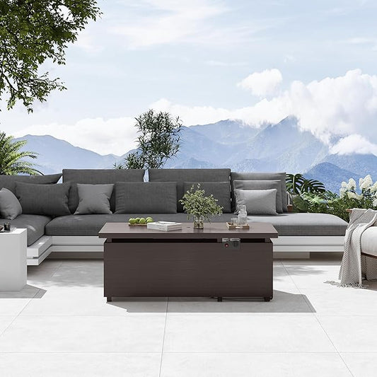 Sundale 50 Inch Outdoor Fire Pit Table, 50,000BTU Rectangle Propane Fire Pit with Glass Wind Guard, Rain Cover, Removable Lid, CSA Certified, Brown