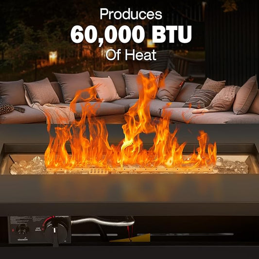 Hykolity 42 Inch Gas Fire Pit Table, 60,000 BTU Propane Pits for Outside with Steel Lid and Waterproof Cover, 2 in 1 Firepit Table Gatherings Parties on Patio Deck Garden Backyard, Black