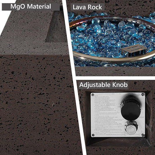 Elementi Manhattan Gas Fire Pit Bundle Concrete Fire Table, Outdoor Fire Pit Electronic Ignition | Canvas Cover, Lava Rock Included | Free AMS Wind Guard | Light Gray (Propane Gas)