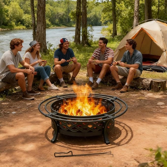 42 Inch Outdoor Fire Pit with 2 Loops,Crossweave Wood Burning Fire Pits for Outside,with Spark Screen,Fire Poker,Round Metal Firepit for Patio,Backyard,Beach,Camping,Bonfire(42''Black)
