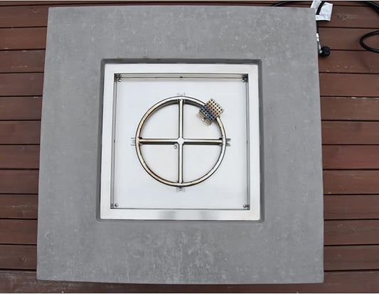 Elementi Manhattan Outdoor Gas Firepit Table 36 Inches Natural Gas Fire Pit Patio Heater Concrete High Floor Clearance Firepits Outside Electronic Ignition Backyard Fireplace Cover Lava Rock Included