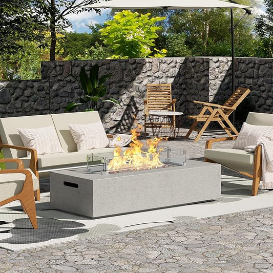 Propane Fire Pit Table,44 Inch 55000 BTU Outdoor Gas Fire Pit Rectangular with Glass Wind Guard for Outside Patio Deck (Gray-Glass Top)