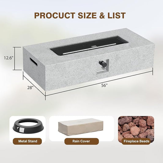Outdoor Propane Fire Pit Table – Premium Marble-Like MgO Finish, 56-Inch Gas Fire Table for Patio, Garden & Backyard, Includes Rain Cover & Lava Rocks