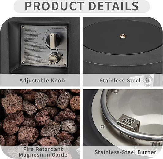 45 inch Propane Fire Pit Table,50000 BTU Gas Fire Pits Table with Lid & Lava Rock & Waterproof Cover, Outdoor Propane Firepit for Dining or Party, Outside, Patio, Garden, Yard