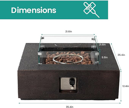 SUNBURY Outdoor Propane Gas Fire Pit Table, 35 Inch Square Outdoor Firepit Table, 50000 BTU Fire Table for Patio Set, Brown