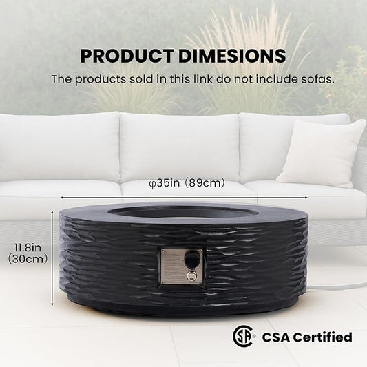 Round Fire Pits, 35 in Round Outdoor Propane Gas Fire Pit Table, 50000 BTU FirePit for Outside Patio with Rain Cover, Lava Rocks for Backyard & Deck, Black