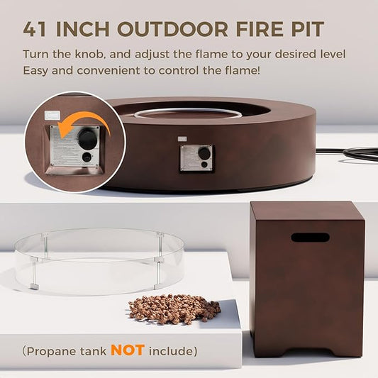 SUNBURY Outdoor Propane Fire Pit,CSA Certified,Dark Brown Patio Fire Table 50000 BTU w 20 Gallon Tank Cover, Glass Wind Guard, Waterproof Cover
