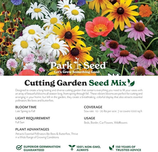 Park Seed Grow Your Own Vibrant Annual and Perennial Wildflower Garden Seeds Mixture, Easy to Grow Varieties for Pollinators and Spring Gardens - Cutting Garden Mix, 1 lb