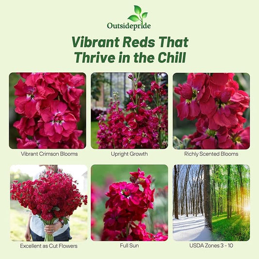Outsidepride Ten Week Crimson Mattiola Stock Seeds - 2000 Pcs Annual Flower Seeds for Planting with Fragrant Blooms That Attract Pollinators, Compact Growth, for Cut Flower Arrangements & Containers