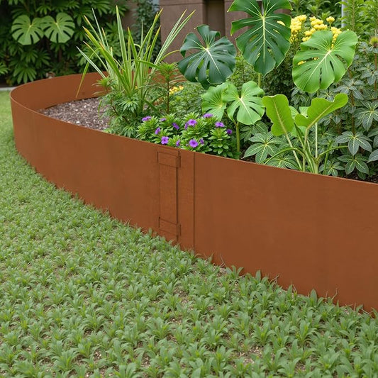 Heavy-Duty Cor-Ten Steel Landscape Edging (8" H x 40" L) - 6-Pack (20 Ft Total) | Pre-Rusted, Weatherproof Garden Border | Hammer-in, No Dig, Bendable Design for Lawns, Flower Beds & Trees