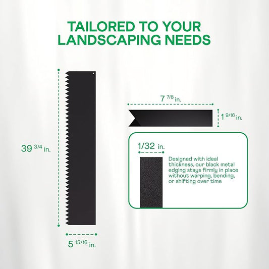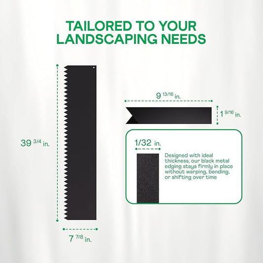 IDZO Black Metal Landscape Edging 8" H, Weather-Resistant Steel Garden Border, Flexible Lawn Barrier, Easy Installation for Flower Beds, Paths, Driveways, and Outdoor Spaces - 6 Pieces