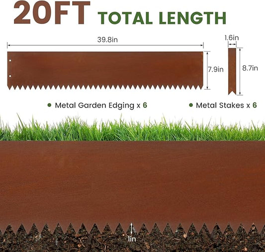Dyna-Living 40 x 8 Inch Steel Landscape Edging 6 Pack Metal Edging for Landscaping Garden Edging Border, 20FT Total Pre-Rusted Border Metal Landscape Edging with Clips for Lawn, Garden, Yard