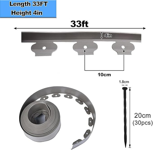 Garden Edging,33ft Landscape Edging Borders Garden Border Edging【4 INCH Hight】 Flexible Lawn Edging Include 30 Stakes,Paver Edging for Yard, Lawn, Gardens(Grey)
