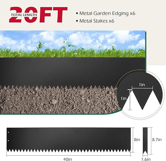 Dyna-Living 40 x 8 Inch Steel Landscape Edging 6 Pack Metal Edging for Landscaping Garden Edging Border, 20FT Total Landscape Edging Border Metal Landscape Edging with Clips for Lawn, Garden, Yard