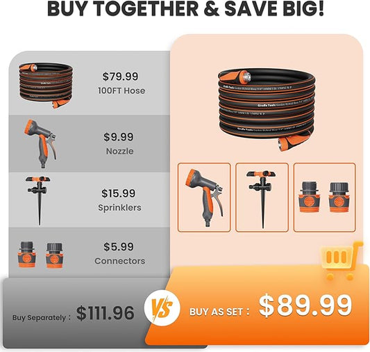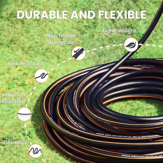 Giraffe Tools Garden Hose 100ft x 5/8", Water Hose Heavy Duty with 10-Pattern Nozzle, Ground Sprinkle, Flexible, Lightweight Hybrid Hose with Swivel Handle, Male to Female Fittings, Burst 600 PSI