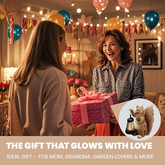 Solar Squirrel Garden Statue Outdoor Decor, Squirrel Sculpture with Lantern for Yard Lawn Patio Balcony, Birthday Housewarming Gifts for Mom, Grandma, Women, Brown,Resin