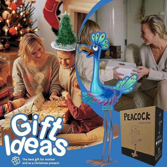 Natelf Large Peacock Statue Outdoor Metal Bird Decor Standing Metal Peacock, Garden Outdoor Sculpture for Yard Patio, Porch, Home for Women, Mom, Grandma