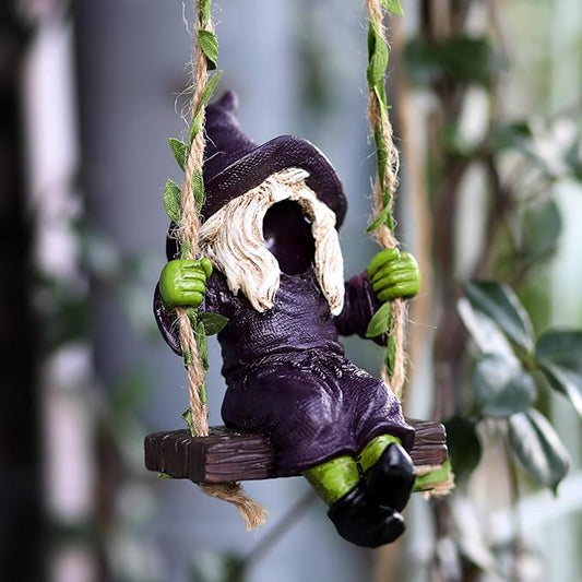 The Garden Witch Statue on The Swing decorates The Small Witch Statue for Indoor and Outdoor Horror Decor Halloween Decor