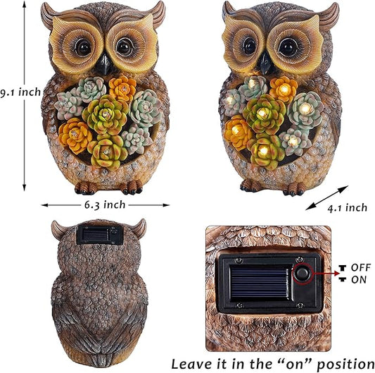FORUP Owl Garden Statue, Resin Owl Figurine Garden Lawn Ornaments with Solar LED Lights for Outdoor Yard Garden Decorations
