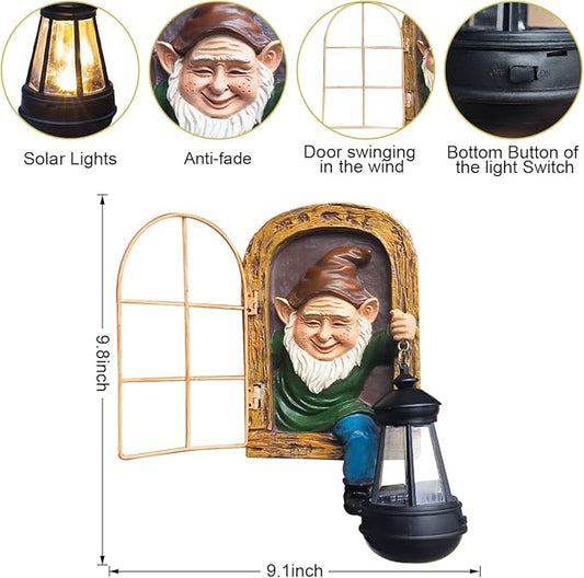 Whimsical Fairy Garden Halloween Gnomes with Solar Lights-10 Elf Out The Door Tree Hugger Garden Statues-Outdoor&Yard Decor-Tree Face Sculpture,Ideal Gifts - Yard Art for Patio,Fence,Wall