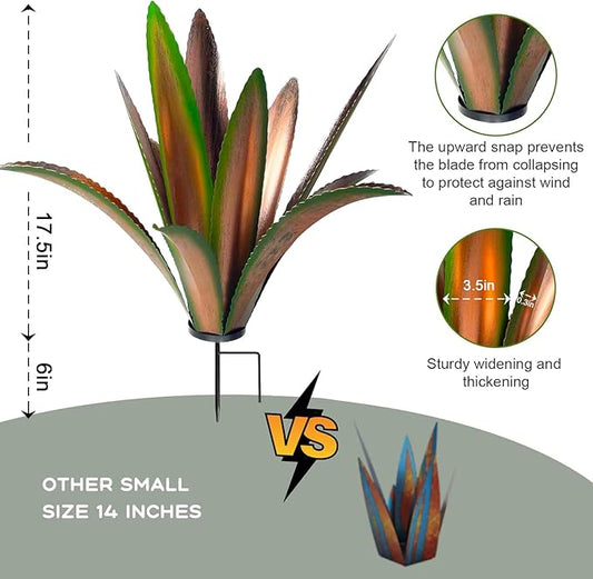 TOMBABY Enlarge thickened Wind Resistant Metal Agave Garden Art Plant Country Sculpture Statue Outdoor decoration Courtyard Lawn Ornament Gift (12 Leaves Green 2 pcs) (TB-410-415)