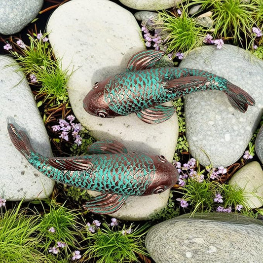 Garden Statues,Koi Fish Decor,Set of 2 Antique Koi Fish Garden Statue,Sculpture for Outdoors,Patio Decor,Backyard and Home Kitchen Decoration,Gifts for Mom Women Grandma