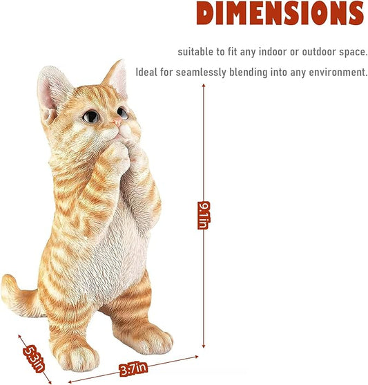Tabby Praying Cat Statues Outdoor Decorative, Cat Memorial Statue for Yard Lawn Patio Porch, Garden Pet Grave Marker Figures, 5.3" L x 3.7" W x 9.1" H