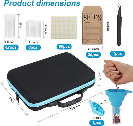 48 Slots Seed Storage Organizer Box, Garden Vegetable Plant Flower Seeds Saving kit with Write Label Funnel Tweezer 2 Sizes Storage Bottles